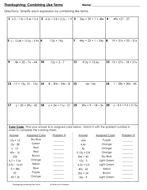 Students begin to work with combining like terms in a series of math worksheets, lessons, and homework.